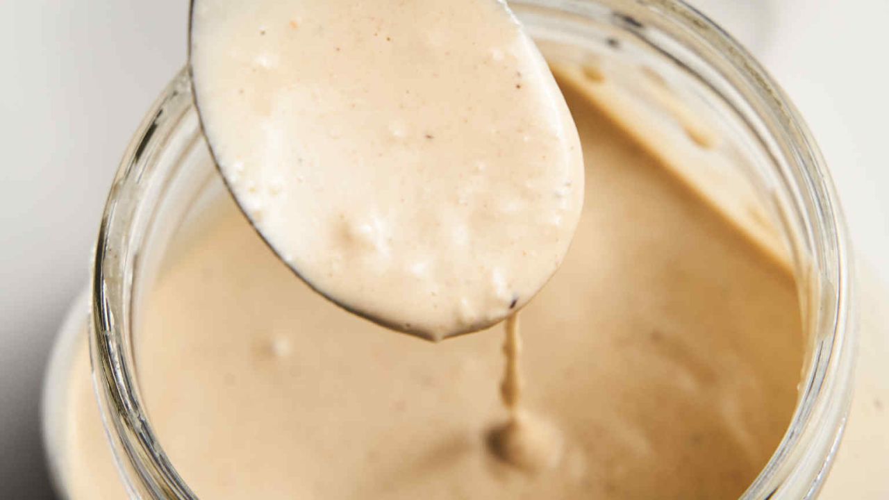- Για τη σάλτσα με ταχίνι, ελιές και λεμόνι, πρώτα χτυπάμε σε ένα μπολ το ταχίνι με το λεμόνι. Το μείγμα θα σφίξει λίγο, αλλά είναι φυσιολογικό.