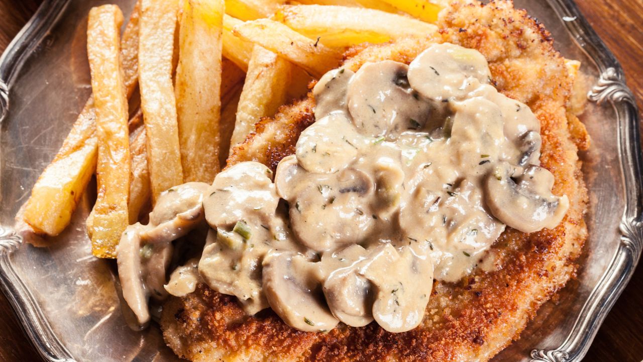 - Σερβίρουμε τα σνίτζελ ζεστά και τραγανά, προσθέτοντας σε κάθε πιάτο μανιτάρια, πατάτες τηγανητές και φέτες λεμονιού.