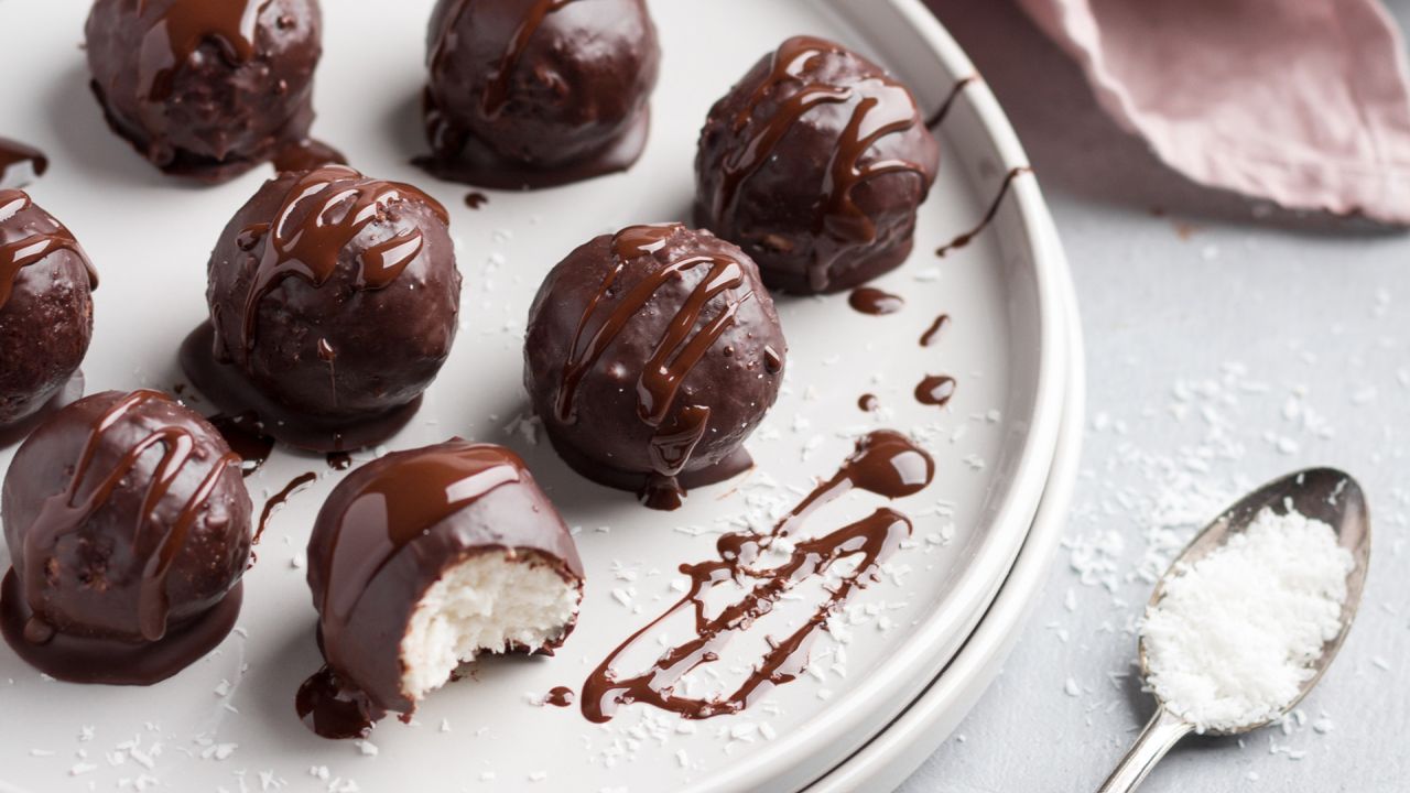 - Αν θέλουμε, πριν στεγνώσει η κουβερτούρα πασπαλίζουμε τα σοκολατάκια με λίγο ινδοκάρυδο και τα αφήνουμε στο ψυγείο μέχρι να στεγνώσουν εντελώς.