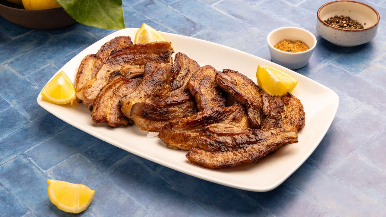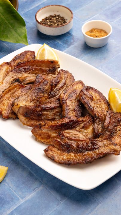 - 700 – 800 γρ. πανσέτα χοιρινή, κομμένη σε φέτες 1–1,5 εκ.