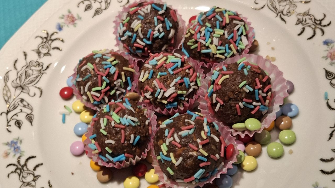 8. Τα περνάμε από την πολύχρωμη τρούφα που έχουμε απλώσει σε πιάτο.