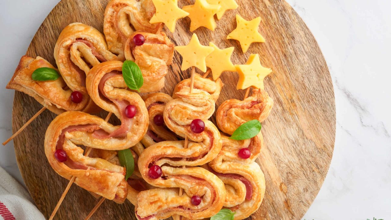 - Σερβίρουμε τα σφολιατίνια ζεστά ή χλιαρά μαζί με το καλαμάκι πάνω σε πλατό. Με μικρά κουπ - πατ σε σχήμα αστεριού κόβουμε από τις φέτες του Arla Havarti αστεράκια και διακοσμούμε τα ελατάκια μας. Προσθέτουμε πάνω στα ελατάκια και σποράκια ροδιού εδώ κι εκεί σαν μπάλες.